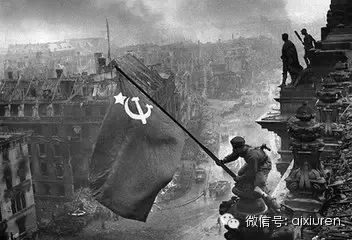 (“德國國會大廈上揮舞旗幟”。這幅著名的照片是由YevgenyKhaldei在1945年五月2日拍攝。照片裏是柏林之戰後,蘇聯士兵把蘇聯國旗插在德國國會大廈樓頂。這幅照片其實是事後的重拍,後來作者、士兵的身份等都備受爭議。)